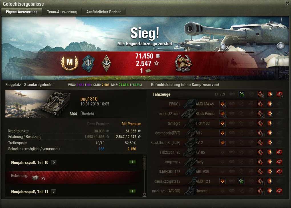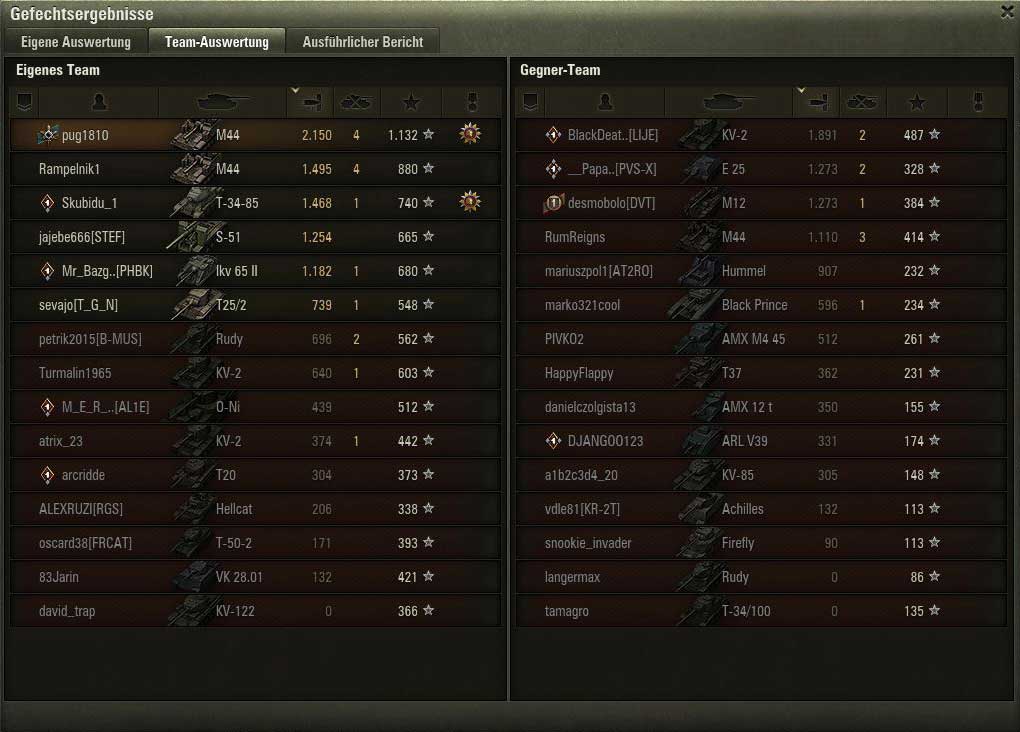 Ohne die Artys wäre das Spiel sicherlich verloren gewesen. Aber die Panzer mussten schon übel einstecken. 3 Artys und 2 gute M44-Fahrer sind für eine Map einfach zu viel. Eine Arty pro Map wäre ausreichend und fair für alle.